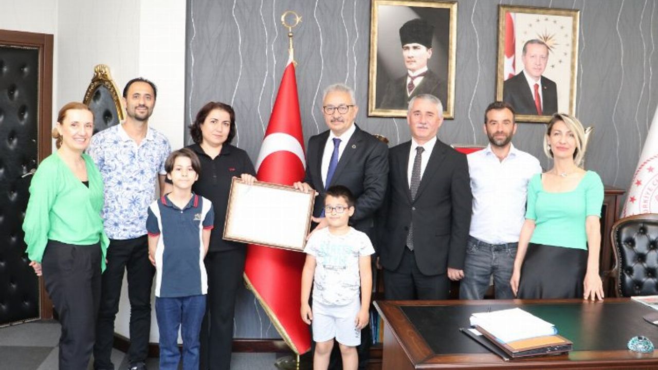Okul Müdürü Meral Şahin Günkut, Çevre beratını alırken, başarının ekip çalışması sonucu olduğunu söyledi.