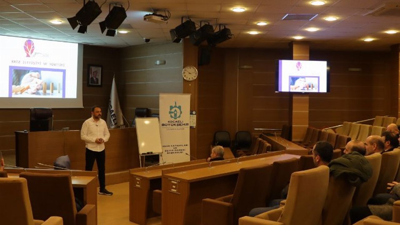 Kocaeli Büyükşehir Belediyesi, personelin vatandaşlarla iletişimini güçlendirmek için “Kriz Yönetimi ve İletişim” konulu eğitim verdiKOCAELİ (İGFA) - Vatandaşa daha etkin ve kaliteli hizmet sunulmasını sağlamak adına personele yönelik eğitimlerini aralıksız sürdüren Kocaeli Büyükşehir Belediyesi, son olarak İtfaiye Dairesi Başkanlığı’nda görev yapan personele “Kriz Yönetimi ve İletişim” konulu eğitim verdi. Eğitim programının önemi ve amacı hakkında bilgiler veren İnsan Kaynakları ve Eğitim Dairesi Başkanı Bayram Bayram, “Vatandaşa daha iyi hizmet verebilmek ve kriz anlarında daha etkin çalışabilmek için bu eğitimi düzenledik” açıklamasında bulundu.