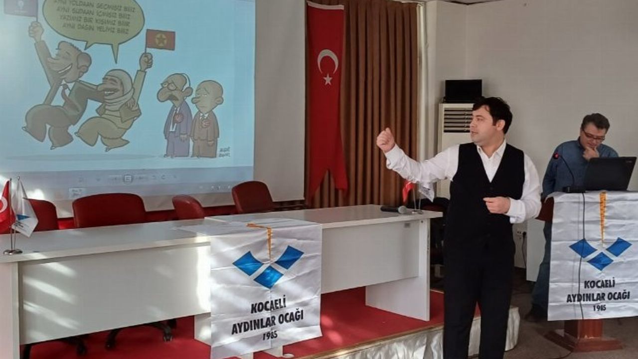 Konuşması sonrasında Murat Yılmaz’a günün hatırası olarak Kocaeli Aydınlar Ocağı adına bir plaket verildi.