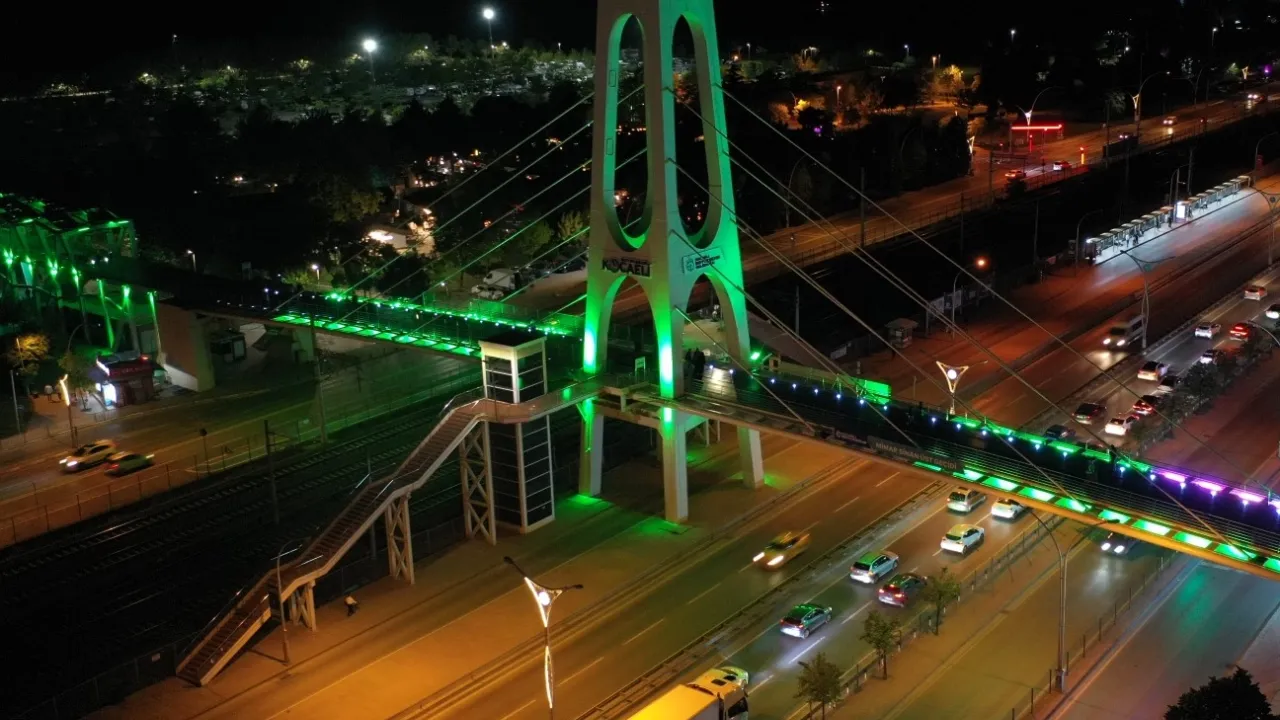 Kocaeli’nde önemli günlerde renk ve ışık gösterileriyle aydınlatılan üst geçitler bu kez Kocaelispor’un şampiyonluğu için yeşil ışıkla aydınlatıldı. Kocaelispor’a koşulsuz destek sunan Büyükşehir Belediyesi, hafta sonu gerçekleşen şampiyonluk kutlamaları öncesinde kentte bulunan modern üst geçitlerin ışıklandırmalarını yeşile büründürdü. Şehre ayrı bir güzellik katan yeşil ışıklandırmalar vatandaşların beğenisini kazandı. Büyükşehir ekipleri bir süre önce de, Başkan Tahir Büyükakın’ın talimatıyla dev Kocaelispor bayrağını Osmangazi Köprüsü’ne ve İstanbul Boğazı’na asarak taraftarların isteğini yerine getirmişti.