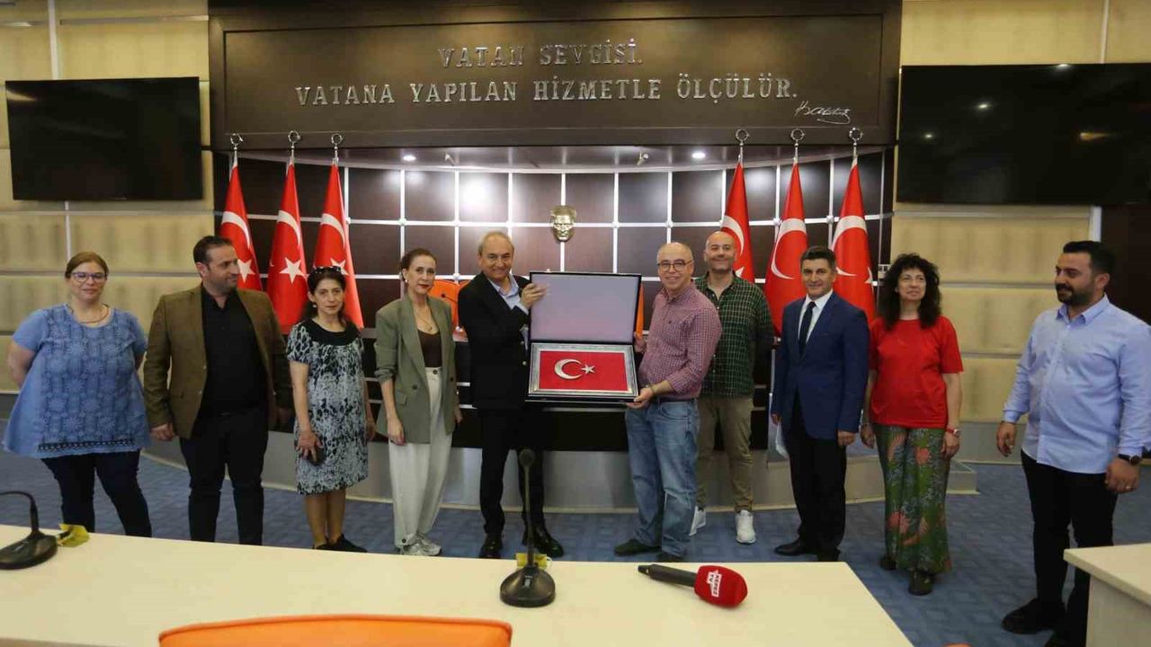 Ziyaret sonunda Başkan Kocagöz, Erasmus heyetine Türk bayrağı portresi hediye etti.