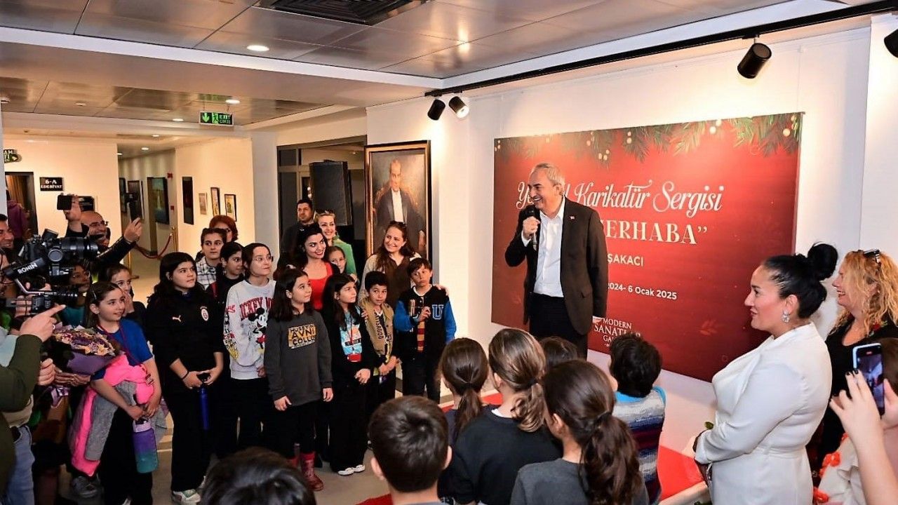 Açılış konuşmasından sonra Başkan Kocagöz, çocuklarla sergiyi gezdi. Feride Özşakacı da, sergilenen karikatürlerle ilgili bilgi verdi. Serginin anı defterini imzalayan Kocagöz, çiçek takdim ettiği Feride Özşakacı’yı, karikatürlerinden dolayı kutladı. Sanatseverler, Dokuma Modern Sanatlar Galerisi’ndeki ‘2025’e Merhaba’ konulu karikatür sergisini 6 Ocak 2005 tarihine kadar gezebilecekler.
