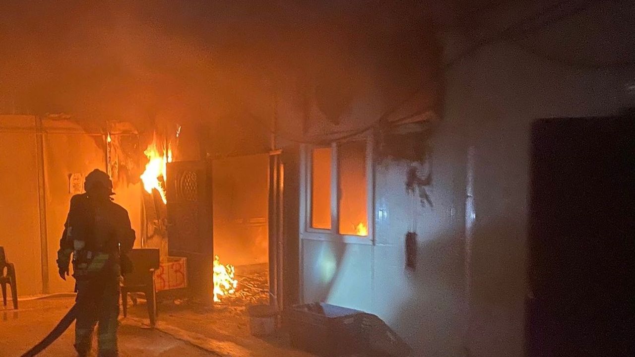 Hatay’da bir şantiyenin yemekhanesinde yaşanan yangında konteynerler kullanılmaz hale geldi.