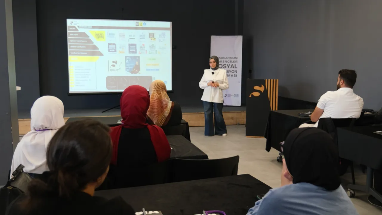 Suriye, Filistin, Yemen, Mısır, Azerbaycan, Pakistan, Fas gibi farklı ülkelerden katılım sağlayan uluslararası öğrencilerin kendi ülkelerine dair yoksulluk, göç, kadın istihdamı, sosyal eşitsizlik gibi sorunlara ilişkin çözüm önerileri geliştirmesine yönelik farkındalık kazanmalarını hedefleyen programda “Dezenformasyon ve Toplumsal Algı” temasında söyleşi düzenlendi.