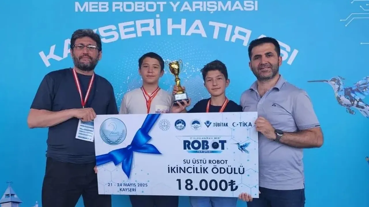 Konya'da Karatay Belediyesi’nin ilçeye kazandırdığı Karatay Bilim ve Sanat Merkezi (BİLSEM), büyük bir başarıya imza attı. Uluslararası MEB Robot Yarışması’nda Karatay BİLSEM, “Su Üstü Robot” kategorisinde geliştirdiği “KTP_Ayışığı1” adlı robot projesiyle Türkiye ikinciliğini elde etti.KONYA (İGFA) - Kayseri'de 21–24 Mayıs 2025 tarihleri arasında düzenlenen yarışmaya, Türkiye’nin yanı sıra 14 farklı ülkeden toplam 10 bin 509 öğrenci ve öğretmen 3 bin 903 robotla katıldı. Konya ise 474 öğrenci ve öğretmenle 389 projeyle yarışmaya dahil olarak ev sahibi Kayseri’nin ardından en fazla başvuru yapan il oldu. Ayrıca 1 Türkiye birinciliği, 2 Türkiye ikinciliği ve 2 Türkiye üçüncülüğü ile Konya, en fazla derece alan ikinci il olmayı başardı.