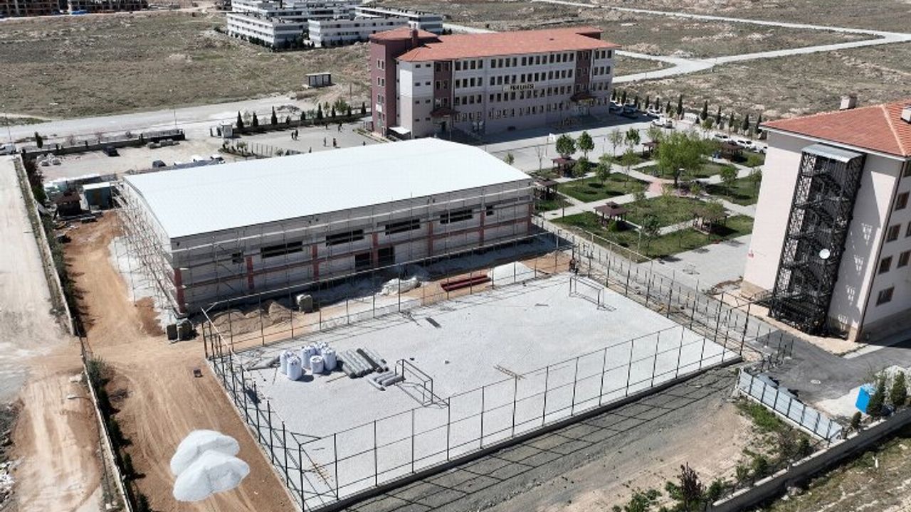 Konya'da Selçuklu Belediyesi tarafından Selçuklu Fen Lisesi’ne kazandırılacak olan kapalı spor salonu ve suni çim sahanın yapımı devam ediyor. KONYA (İGFA) - Selçuklu Belediyesi eğitime ve gençliğe olan desteğine ilçede bulunan okullara kapalı spor salonları ve suni çim sahalar kazandırarak devam ediyor. Bu çerçevede projelendirilen Selçuklu Fen Lisesi Kapalı Spor Salonu ve Suni Çim Sahanın yapım çalışmaları aralıksız sürüyor. Eğitimi ve gençliği her zaman önemseyen Selçuklu Belediyesi kapalı kapalı spor salonu ile bu yatırımlarını taçlandırıyor.