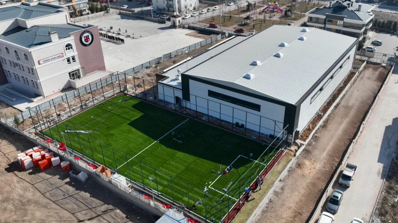 Konya Spor Lisesi Ahmet Çalık Kapalı Spor Salonu ve Suni Çim Saha 9 bin 877 m² arsa alanı üzerinde 3 bin 331 m² inşaat alanına sahip olacak ve kapalı spor salonu, bodrum ve zemin kattan oluşacak. Salonun bodrum katında 4 adet küçük ölçekli spor salonu yer alırken, zemin katta 1 adet hentbol sahası ölçeğinde ana spor salonu, 176 kişilik tribün, skorbord, ışıklandırma, ses sistemi, 2 adet soyunma odası, 2 adet öğretmenler odası ve ihtiyaç alanları yer alacak. Salonun yan tarafına da 24 x 44 metre ölçülerinde suni çim saha kazandırılacak.