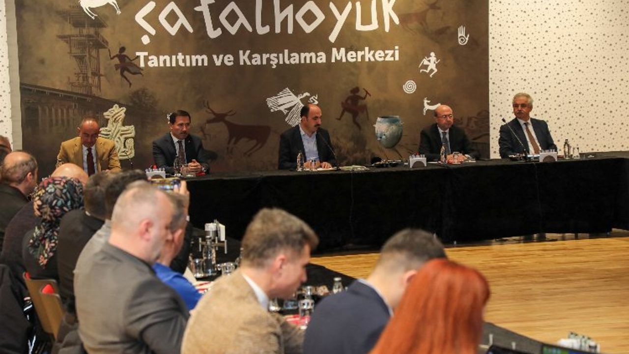 Konya Büyükşehir Belediyesi Çatalhöyük Tanıtım ve Karşılama Merkezi’nde düzenlenen toplantıya Başkan Altay ile birlikte; Karatay Belediye Başkanı Hasan Kılca, Meram Belediye Başkanı Mustafa Kavuş, Selçuklu Belediye Başkanı Ahmet Pekyatırmacı ile Konya’da turizm alanında faaliyet gösteren kurum ve kuruluşların temsilcileri katıldı.