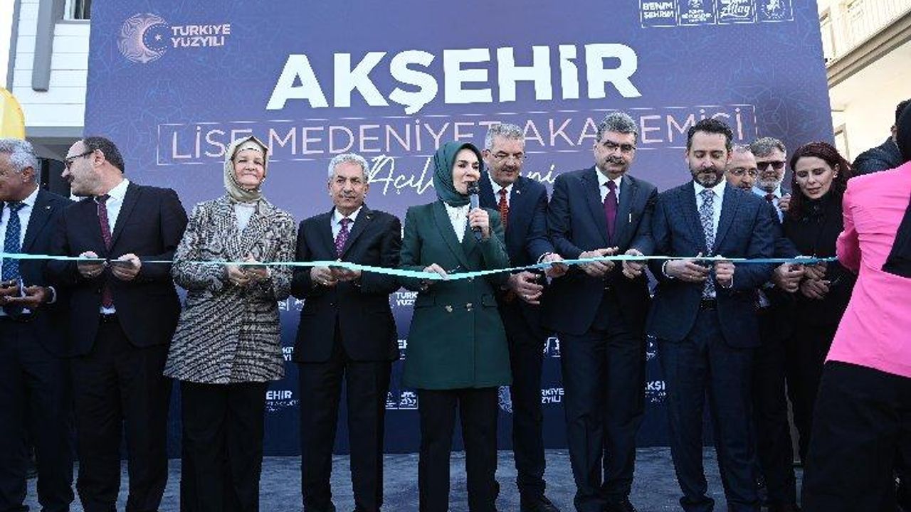 Konya Büyükşehir Belediyesi tarafından Akşehir’e kazandırılan Lise Medeniyet Akademisi’nin açılışı Aile ve Sosyal Hizmetler Bakanı Mahinur Özdemir Göktaş’ın katılımıyla gerçekleştirildi.KONYA (İGFA) - Konya Büyükşehir Belediyesi’nin Akşehir’e kazandırdığı Lise Medeniyet Akademisi, Aile ve Sosyal Hizmetler Bakanı Mahinur Özdemir Göktaş’ın katılımıyla hizmete girdi.