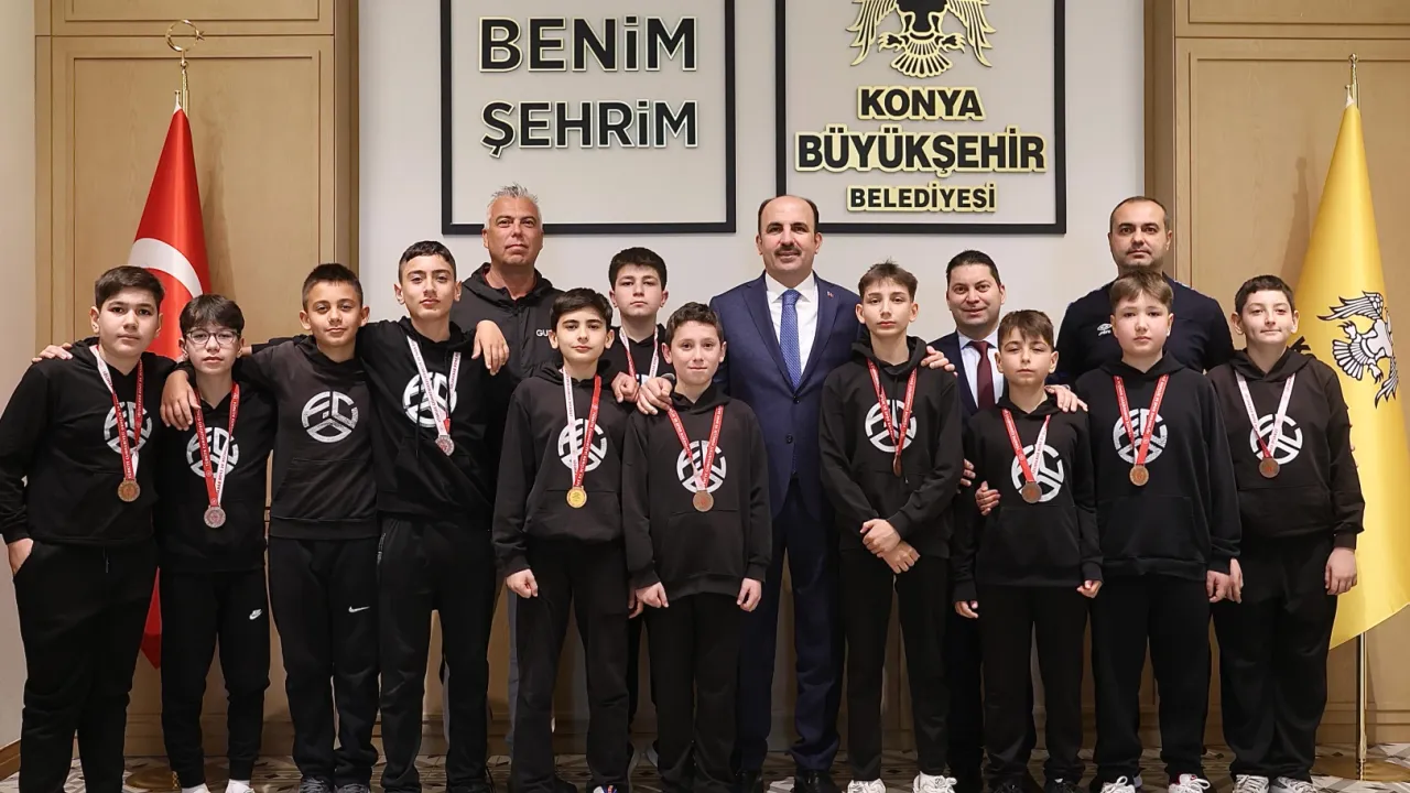 Şampiyonlarda derece elde eden başarılı öğrenciler, teknik kadro ve okul yöneticileriyle birlikte Konya Büyükşehir Belediye Başkanı Uğur İbrahim Altay’ı ziyaret etti.