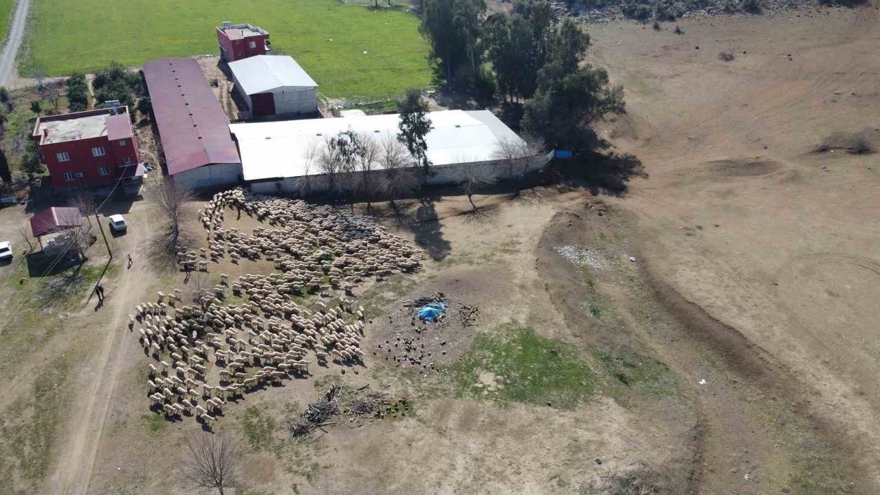 Adana’nın Kozan ilçesinde koyun ve kuzuların buluşması dron ile görüntülendi.
