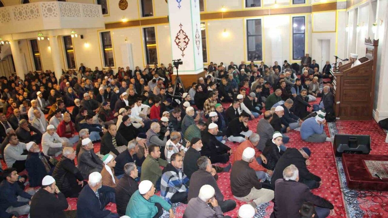 Büyük Kumluca Camiine gelen halk önce yatsı namazı kıldı. Ardından Kumluca Müftü Vekili Muhammed Emin Emre kısa bir konuşma yaptı.