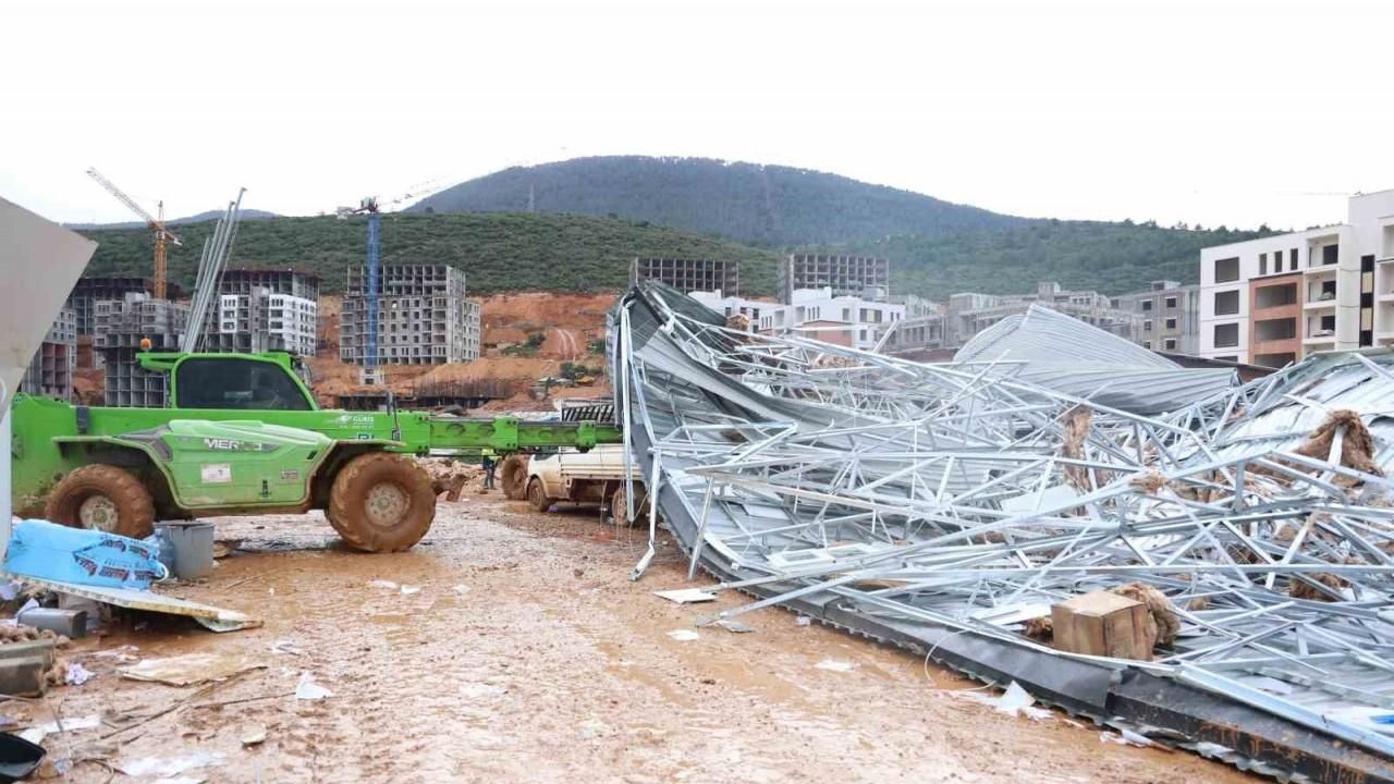 Hatay’ın İskenderun ilçesinde etkili olan kuvvetli fırtına, inşaat alanındaki ofislerin çatılarını uçurdu. Çatıların isabet ettiği 2 kişi yaralanırken 2 araçta yaralandı.