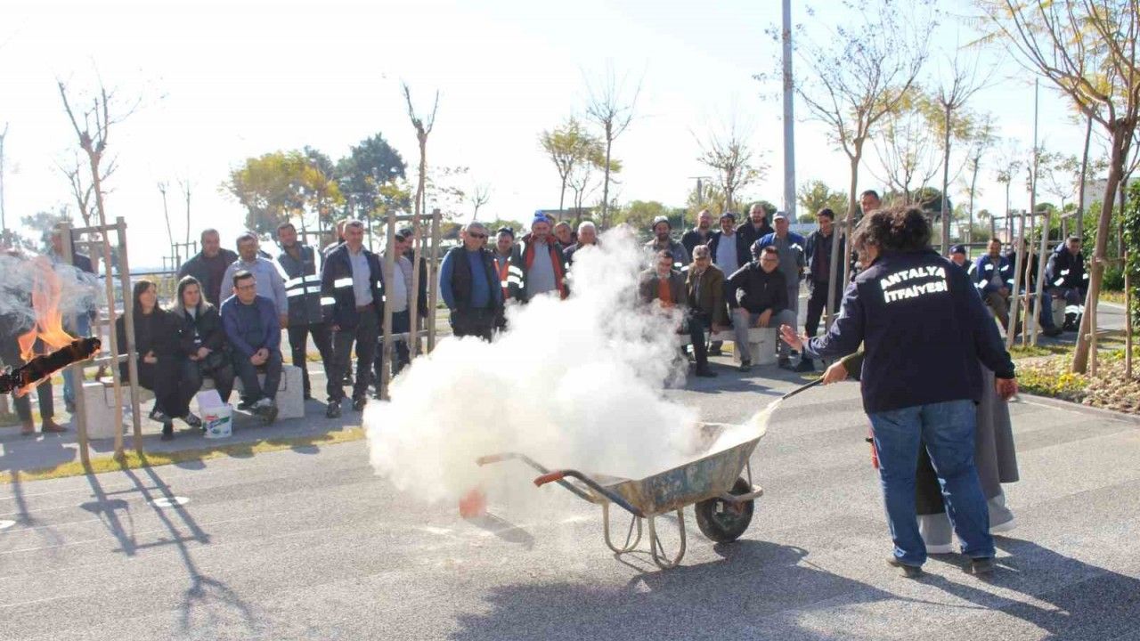 Antalya Büyükşehir Belediyesi itfaiye ekipleri, Manavgat ve Kemer ilçe hizmet birimlerinde çalışan personele yönelik yangın eğitimi ve yangın söndürme tatbikatı düzenledi.