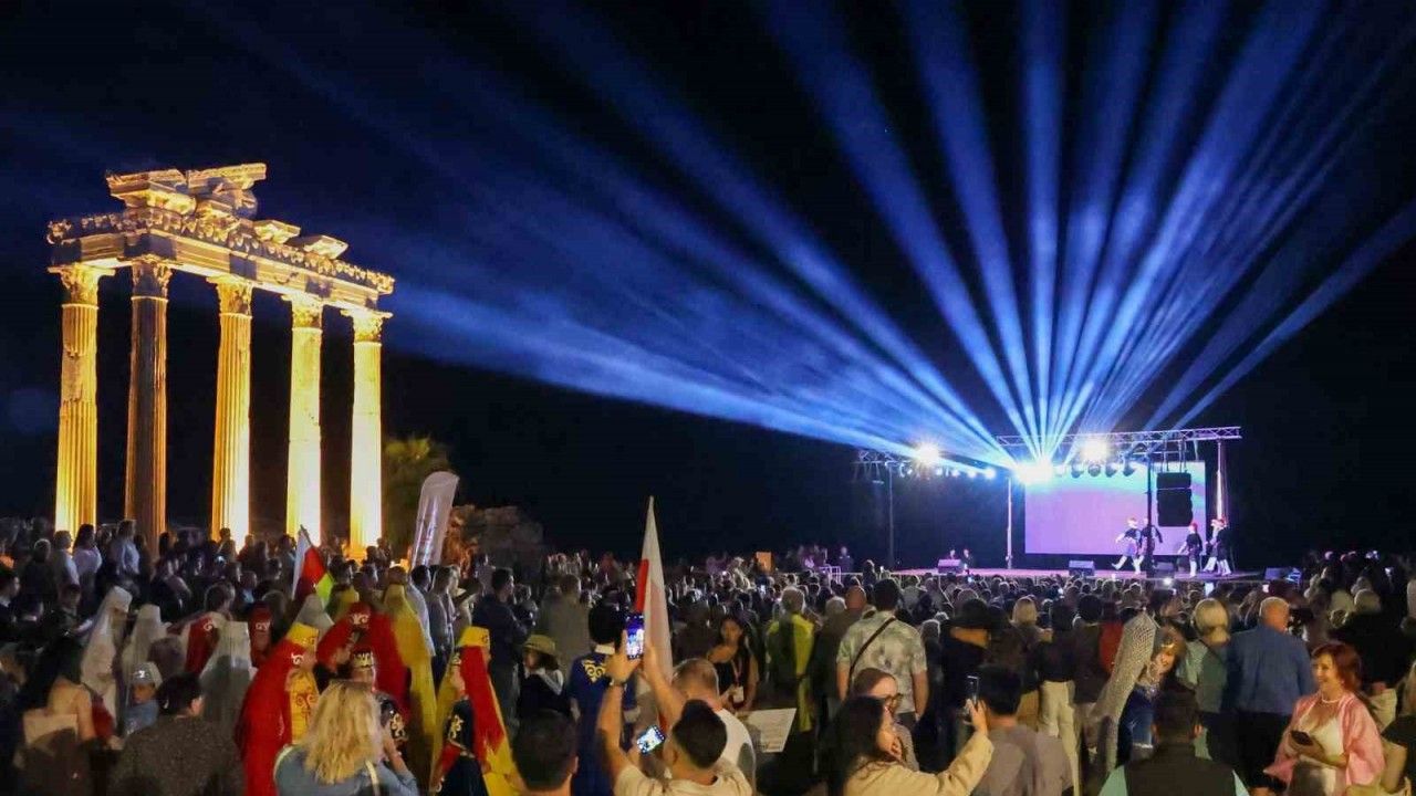 Apollon Tapınağı’nın tarihi atmosferinde gerçekleşen festival, dünyanın farklı coğrafyalarından gelen halk dansı ekiplerinin renkli performanslarına ev sahipliği yaptı.