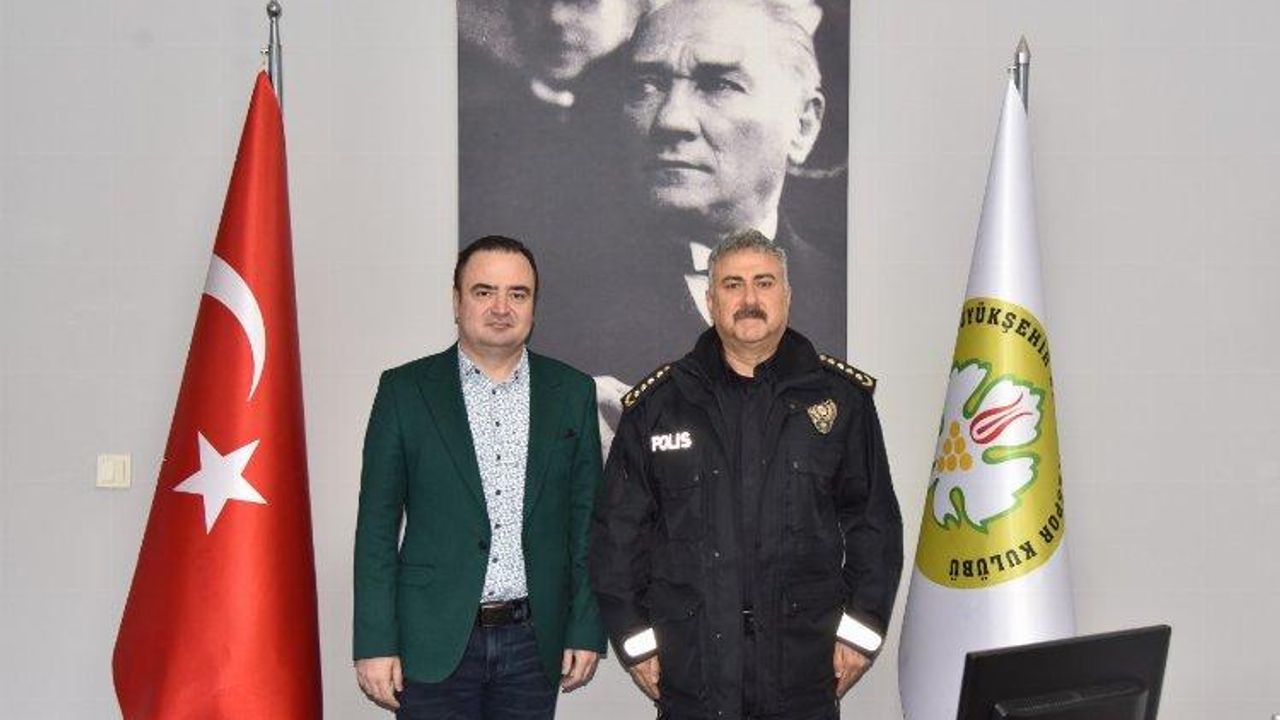 Manisa Büyükşehir Belediyespor Kulübü Başkanı Bora Çaylan, Manisa İl Emniyet Müdürü Fahri Aktaş’ı, Tevfik Lav Spor Tesisinde ağırladı.MANİSA (İGFA) - Manisa İl Emniyet Müdürü Fahri Aktaş, Manisa Büyükşehir Belediyespor Kulübü Başkanı Bora Çaylan’ı ziyaret etti. Ziyarette, Yönetim Kurulu Üyeleri Engin Altun ve Mustafa Yücel de yer aldı. Aktaş, aldığı başarılı sonuçlarla birçok branşta adından söz ettiren Manisa BBSK’yı tebrik ederek, başarılarının devamını diledi.