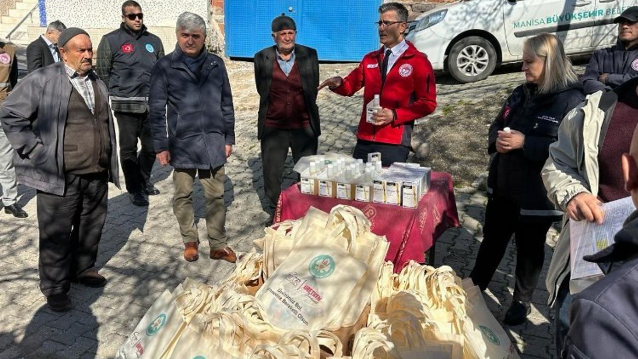 Manisa Büyükşehir Belediyesinin hayvan üreticileri için hayata geçirdiği ‘Büyükbaş Hayvanların Dış Parazitler Yönünden Korunması Projesi’ kapsamında, Yunusemre ilçesine bağlı Asmacık, Karahüseyinli, Pınarköy, Recepli, Sakallı, Süngüllü ve Uzunlar mahallelerinde büyükbaş hayvan üreticilerine antiparaziter preparat desteği ve ilacın kullanımı ile ilgili eğitim verildi.MANİSA (İGFA) - Tarımsal ve kırsal kalkınmaya yönelik projeleriyle üreticinin yanında yer alan Manisa Büyükşehir Belediyesi, İl Tarım ve Orman Müdürlüğü işbirliğiyle yürüttüğü ‘Büyükbaş Hayvanların Dış Parazitler Yönünden Korunması Projesi’ kapsamında, Yunusemre ilçesine bağlı Asmacık, Karahüseyinli, Pınarköy, Recepli, Sakallı, Süngüllü ve Uzunlar mahallelerinde büyükbaş hayvan üreticilerine antiparaziter preparat desteği ve kullanımı ile ilgili eğitim verdi.