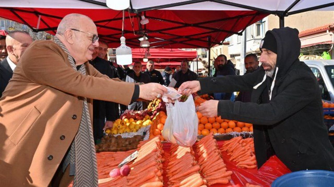 Başkan Ergün, Bedesten Meydanı girişinde Manisa Sebze Meyve ve Umum Pazarcılar Odası Başkanı Destan Bulgay ve Çarşı Mahallesi Muhtarı Vahit Karacalar tarafından çiçekle karşılandı. Tüm vatandaşlarla tek tek tokalaşan Başkan Ergün, pazarcı esnaflarını tek tek gezerek hayırlı işler dileklerinde bulundu.