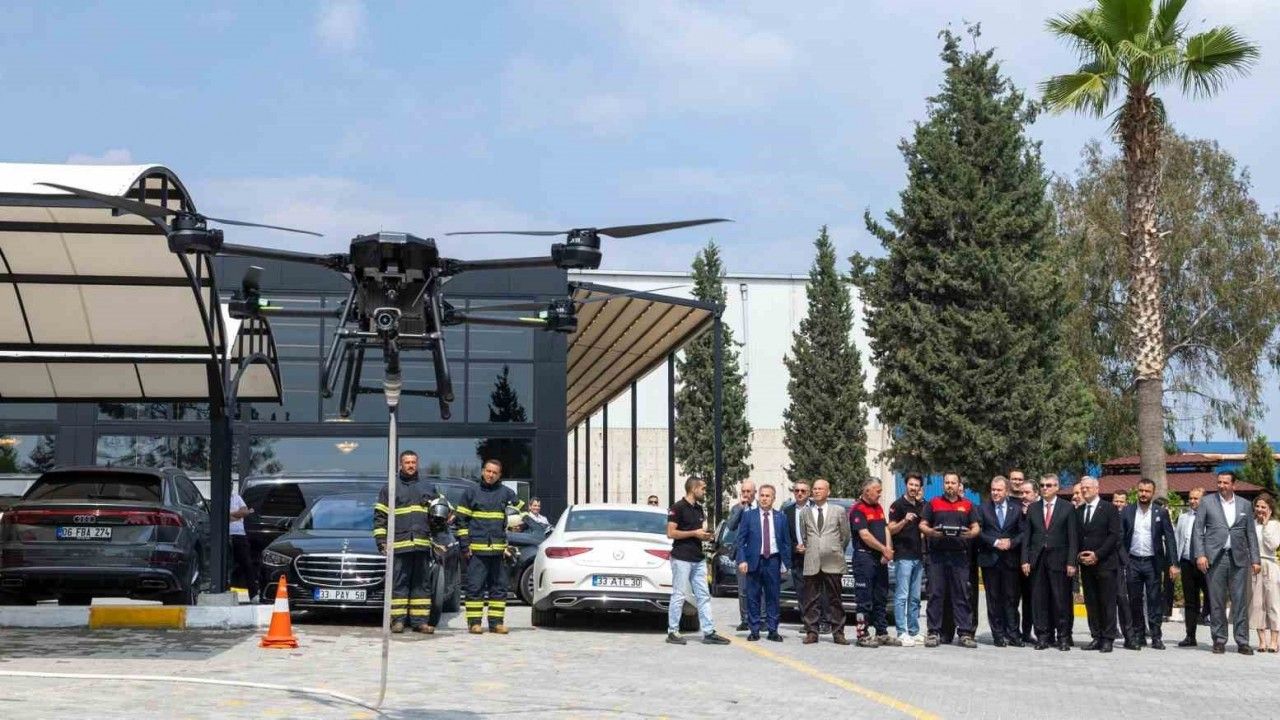 Mersin Organize Sanayi Bölgesi’nde (Mersin OSB) hizmete giren ’Cesur-III’ adlı ’Yangın Müdahale İnsansız Hava Aracı’nın tanıtımı yapıldı.