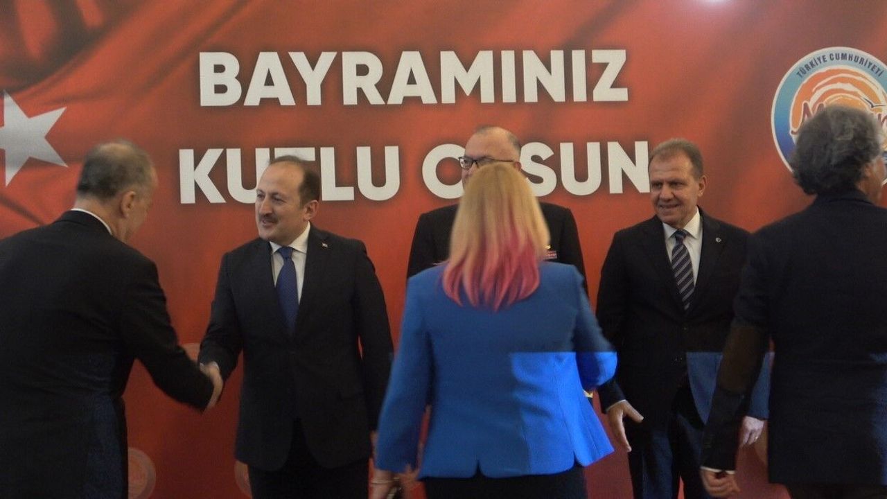 Vali Ali Hamza Pehlivan, Akdeniz Bölge ve Garnizon Komutanı Tuğamiral Murat Fırat ve Mersin Büyükşehir Belediye Başkanı Vahap Seçer, Şeref Salonu girişinde misafirleri karşılayarak tek tek bayramlaştı.
