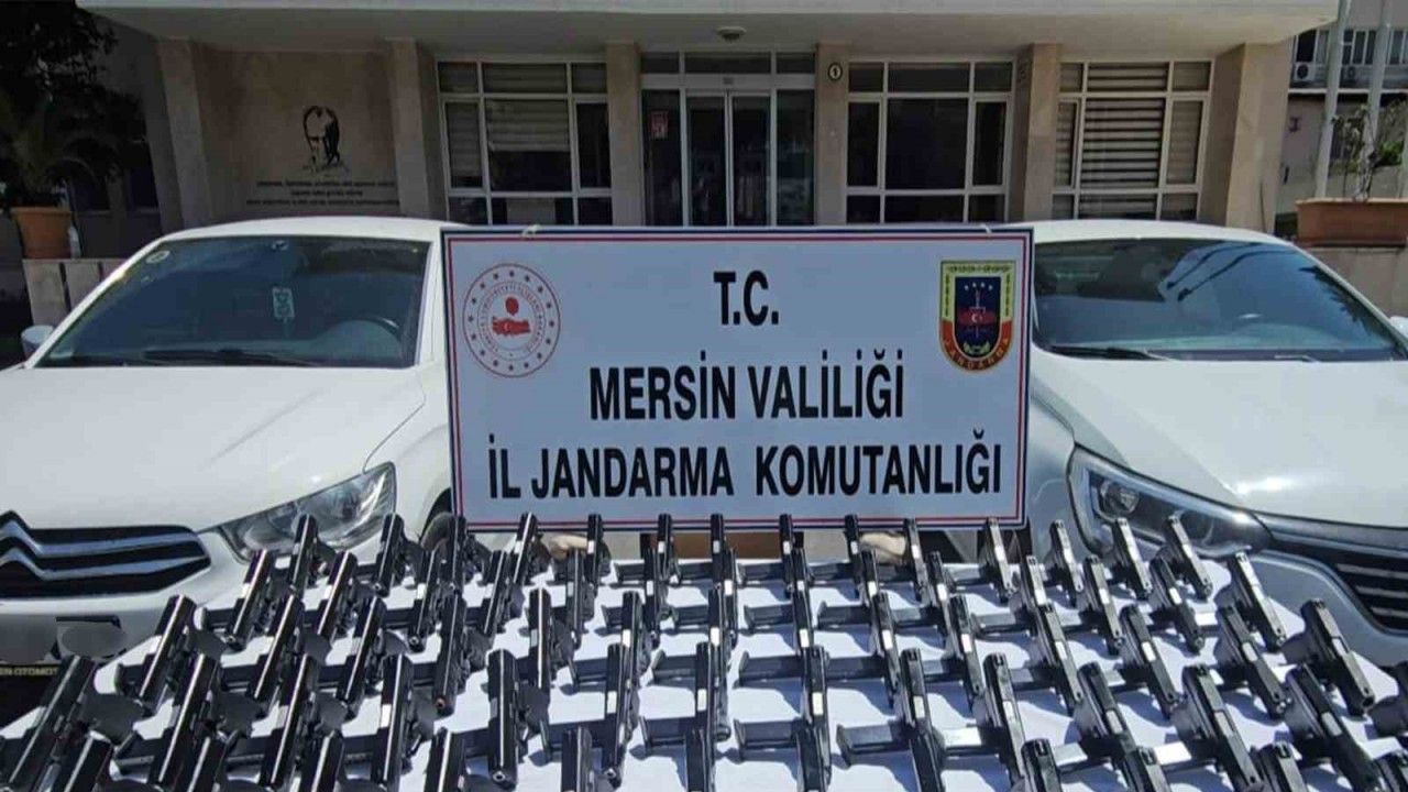 Mersin’de jandarmanın düzenlediği dron destekli operasyonda 2 otomobilde 70 tabanca ele geçirildi, yakalanan 2 şüpheli tutuklandı.
