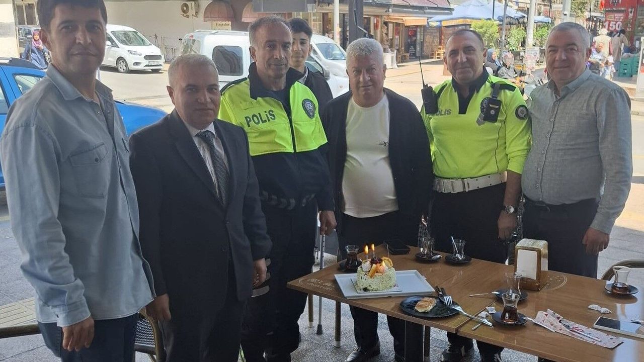 Son görevini yapan Doğan'ı Anamur İlçesi Kaymakamı Kemal Duru ise pastayla uğurladı.