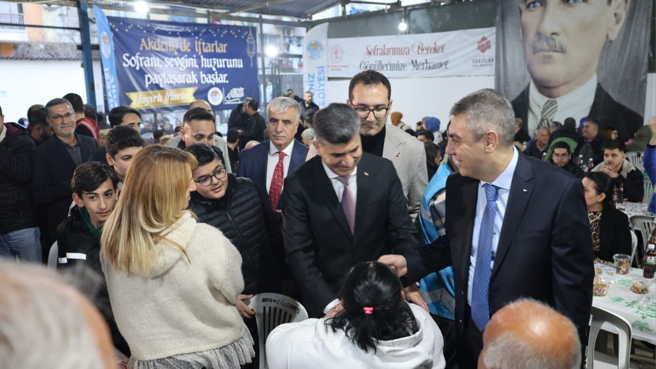 Mersin Valisi Atilla Toros, Adana Vakıflar Bölge Müdürü Metin Evsen ve Akdeniz Kaymakamı ve Belediye Başkan Vekili Zeyit Şener, Mesudiye Mahallesi’nde kurulan iftar sofrasına katılarak vatandaşlarla iftar yaptı.