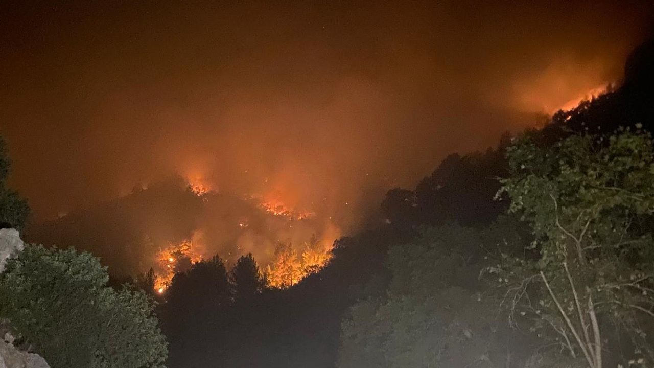 Mersin’in Anamur ilçesinde bugün öğleden sonra çıkan orman yangınına gece de çok sayıda ekip müdahale ederken, bir mahallenin tahliye edildiği öğrenildi. Silifke ilçesinde dün başlayan, 6 mahallenin tahliyesine, 53 evin de yanmasına neden olan orman yangının da devam ettiği, ekiplerin çalışmasını sürdürdüğü bildirildi.