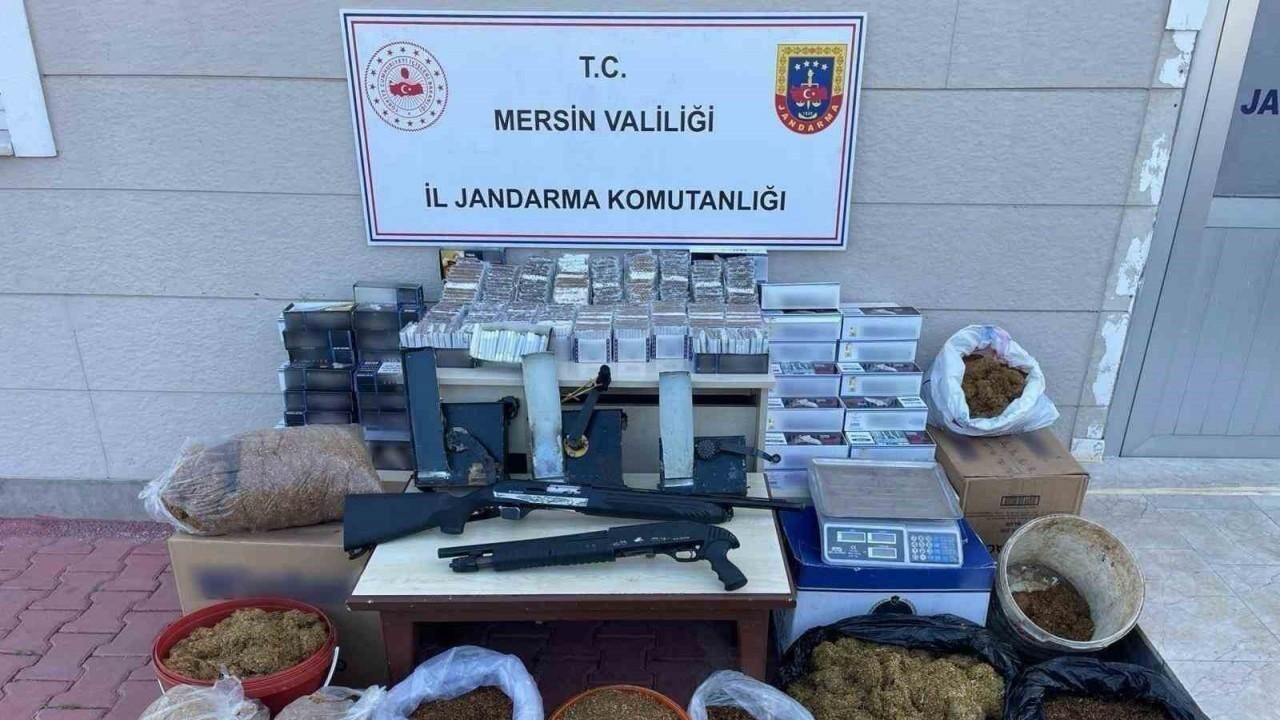 Alınan bilgiye göre, İl Jandarma Komutanlığı ekipleri sigara kaçakçılığı ile mücadele kapsamında çalışma yaptı. Ekiplerin çalışmasında Erdemli, Gülnar ve Tarsus ilçelerinde 5 şüpheli belirlendi. Şüphelilerin yakalanması için 3 ilçede eş zamanlı operasyon yapıldı. Operasyonlarda 5 şüpheli yakalanırken 38 bini dolu 100 bin adet makaron, 3 adet makaron dolum makinası, 332 kilogram kıyılmış sarmalık tütün, 72 bin adet sigara filtresi ile 1 adet elektronik tartı makinası ve 2 adet ruhsatız av tüfeği ele geçirildi.