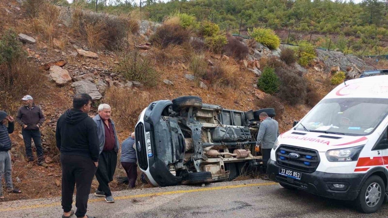 Kaza, ilçeye bağlı Esenpınar Mahallesi Ağlıca mevkiinde meydana geldi. Alınan bilgiye göre, Erdemli istikametine seyreden A.T. yönetimindeki elma yüklü 33 VG 386 plakalı kamyonet, yağışla kayganlaşan yolda sürücüsünün direksiyon hakimiyetini kaybetmesiyle şarampole devrildi. Kazada sürücü ile birlikte araçtaki yolcular S.T. ve H.P. yaralandı. Diğer sürücülerin haber vermesiyle kaza yerine ambulans, itfaiye ve jandarma ekipleri sevk edildi.Yaralılar, ambulanslarla ilçe devlet hastanesi acil servisine kaldırıldı.