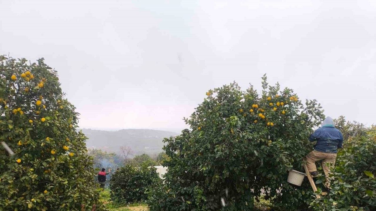 Kar yağışı altında limon hasadı kısa sürse de ayrı bir görsel şölen sundu. Yaklaşık 10 dakika etkili olan kar tutmadan eridi.