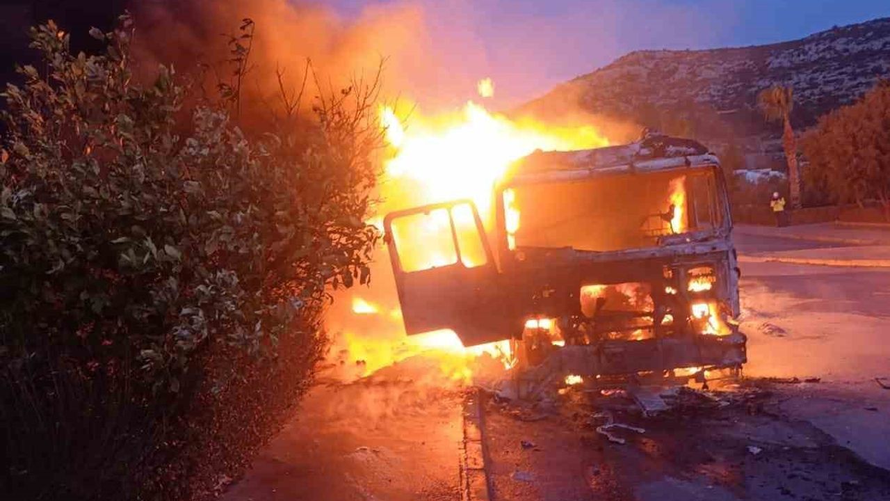 Mersin’in Tarsus ilçesinde otoyolda karton yüklü tır alev alev yandı.