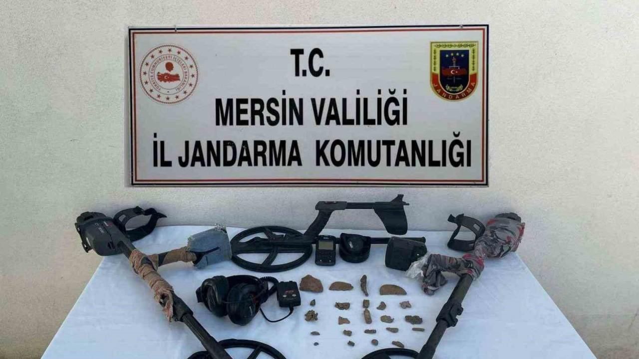El konulan tarihi eserler incelenmek üzere Mersin Müze Müdürlüğüne teslim edilirken, şüpheliler işlemleri tamamlanmak üzere jandarmaya götürüldü.