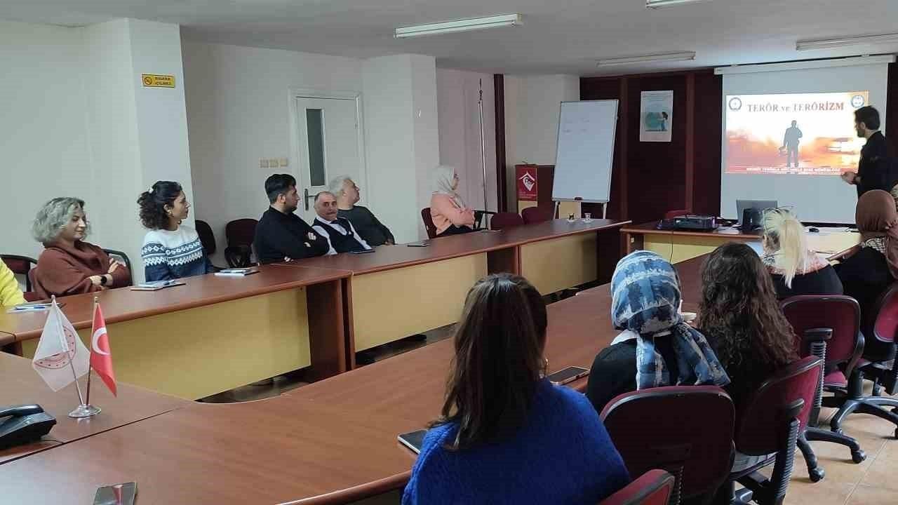 Ayrıca, Aile ve Sosyal Politikalar İl Müdürlüğünde görev yapan personele yönelik yapılan bilgilendirme ve önleme faaliyetleri kapsamında terör, terörizm, radikalleşme, terör örgütlerinin eleman kazanma yöntemleri, şüpheli paket, araç ve şahıslar, sosyal medyanın kullanımı gibi konularda bilgiler verildi.