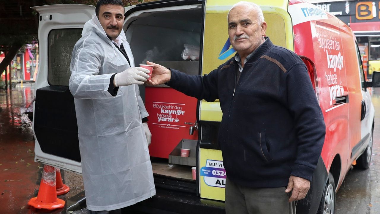 Mersin Büyükşehir Belediyesi, kentin farklı noktalarında dağıttığı geleneksel kaynar ikramıyla soğuk havada vatandaşların içini ısıttı.