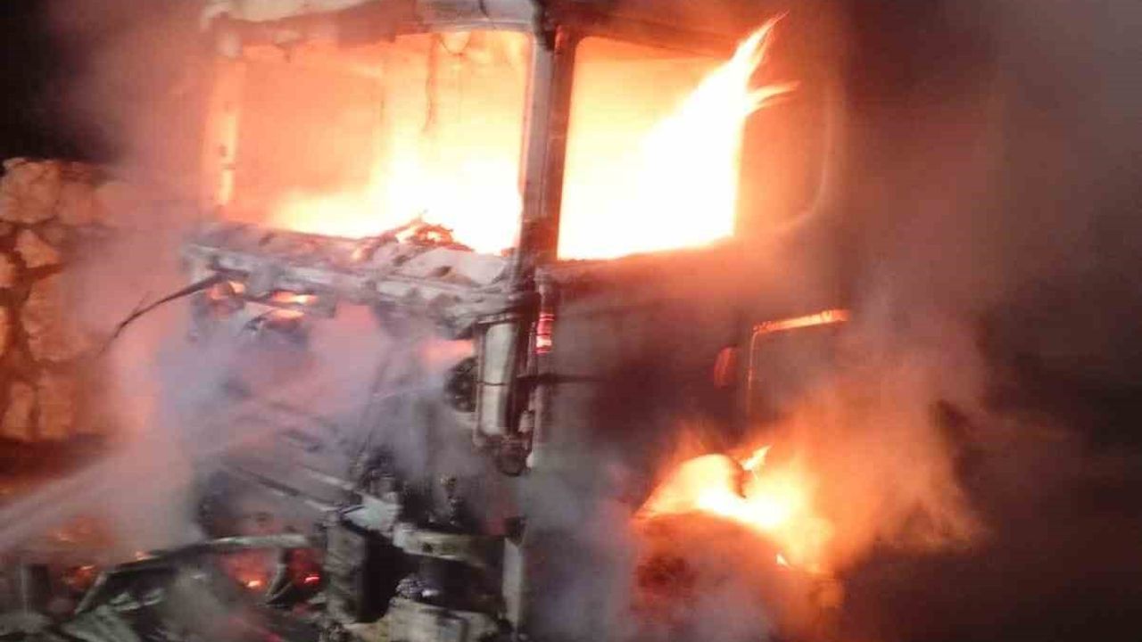 Mersin’in Tarsus ilçesinde tır yanarak kullanılamaz hale geldi.