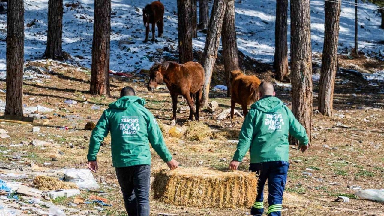 Mersin Büyükşehir Belediyesi ekipleri, Tarsus ilçesine bağlı Karboğazı mevkiinde yaşayan yılkı atlarını çayır otu ve arpa ile besledi. Ekipler, bölgede bulunan yabani köpekler için de mama bıraktı.