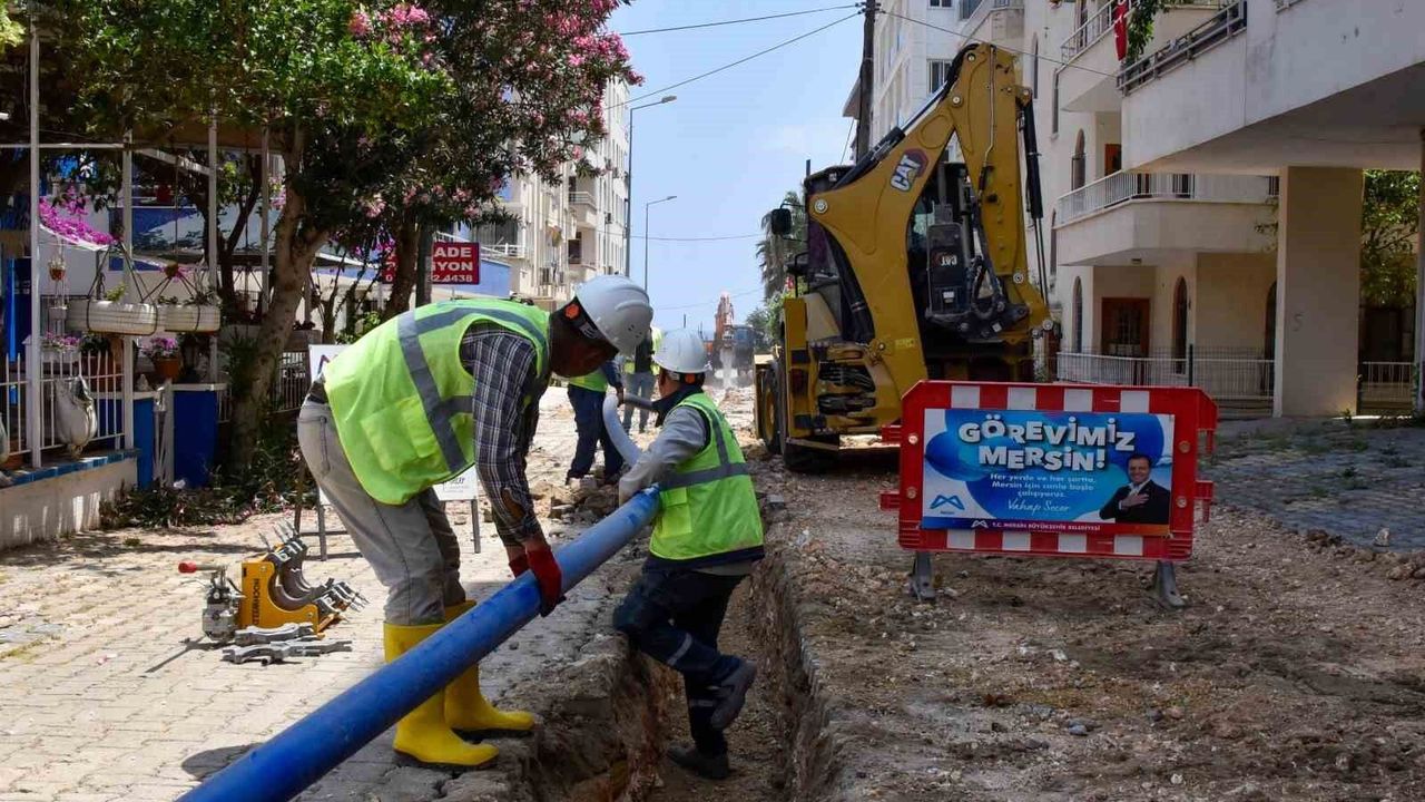 Mersin Büyükşehir Belediyesine bağlık Mersin Su ve Kanalizasyon İdaresi (MESKİ), Silifke Atakent Mahallesi Yapraklıkoy mevkiinde, ekonomik ömrünü tamamlayan içme suyu hattını yenileyerek altyapı sorunlarının önüne geçiyor.