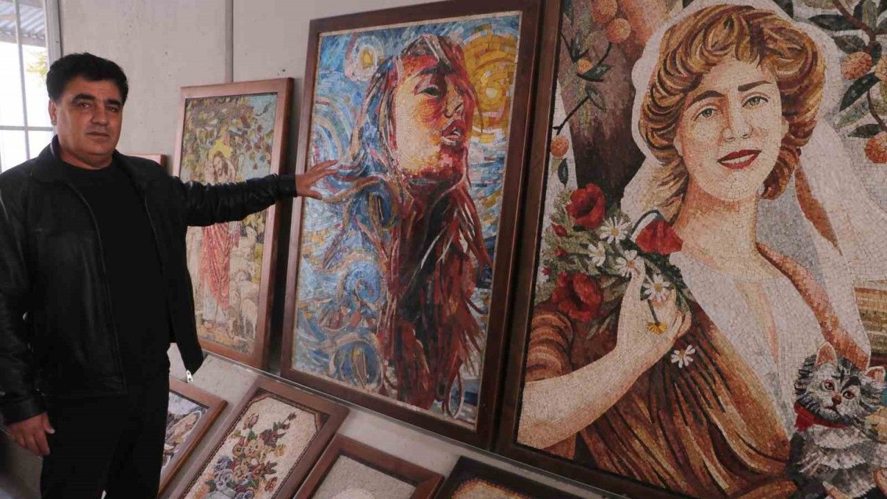 Hatay’ın Reyhanlı ilçesinde yaşayan mozaik ustası Suriyeli Mehmed Eldeni, savaştan sonra yerleştiği Türkiye’de işlerini geliştirerek, 30 çalışanıyla ürettiği eserleri metrekaresini 600 dolardan dünyanın dört bir yanına satıyor.