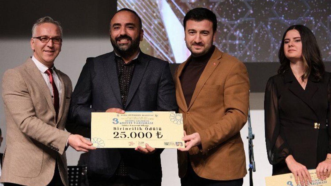 Bursa Büyükşehir Belediyesi tarafından bu yıl “Vuslatın 750. Yılında Mevlâna Şiirlerinden Besteler” temasıyla düzenlenen 3. Erdinç Çelikkol Beste Yarışması’nda kazanan eserler, sanatseverlerin yoğun ilgi gösterdiği müzik dolu gecede belli oldu.BURSA (İGFA) - Büyükşehir Belediyesi Orkestra Şube Müdürlüğü’nün bu yıl üçüncüsünü düzenlediği, “Vuslatın 750. Yılında Mevlâna Şiirlerinden Besteler” temalı Erdinç Çelikkol Beste Yarışması’ finali, Atatürk Kongre Kültür Merkezi Orhangazi Salonu’nda sanatseverlerin yoğun katılımıyla yapıldı.