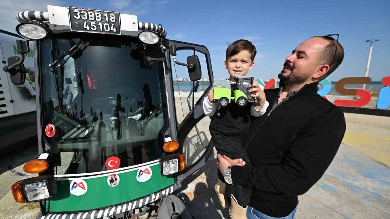 Mersin Büyükşehir Belediyesi, süpürge araçlarına olan sevgisi sosyal medyada paylaşılan 3 yaşındaki Ayaz'ın hayalini gerçeğe dönüştürdü. Minik Ayaz, çok sevdiği yeşil süpürge kamyonuna binerek unutamayacağı bir gün yaşadı.