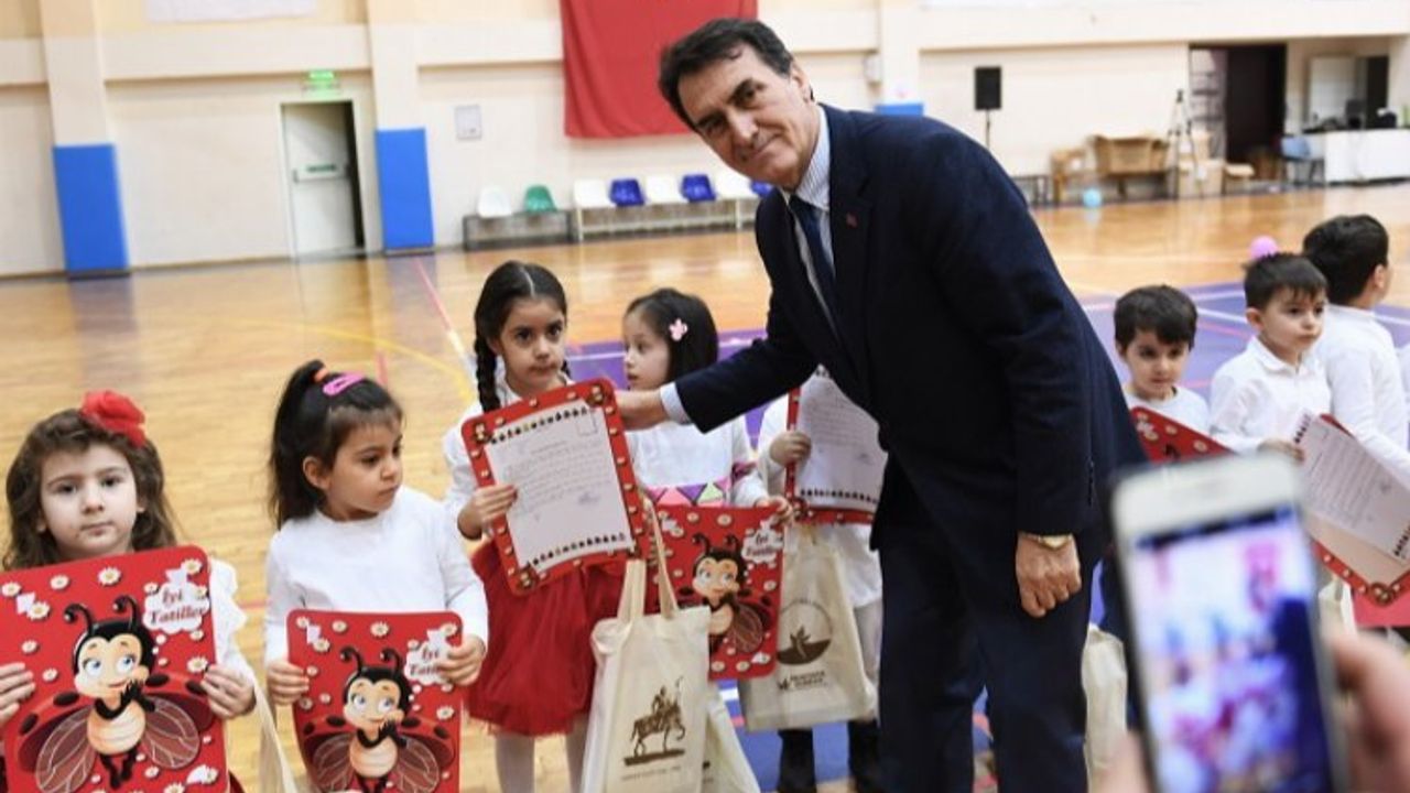 Osmangazi Belediyesi bünyesinde hizmet veren Koza Çocuk Akademisi’nde eğitim gören minik öğrenciler sömestr tatili karnelerini Osmangazi Belediye Başkanı Mustafa Dündar’ın elinden aldı.Bursa (İGFA) - Osmangazi Belediyesi, Gençlik ve Spor Hizmetleri Müdürlüğü bünyesinde Demirkapı Şükran Gönenç Bilgi Evi ve Hüdavendigar Sosyal Gelişim Merkezi binalarında bulunan Koza Çocuk Akademisinde Milli Eğitim Bakanlığı müfredatına uygun şekilde 4-6 yaş grubu 275 öğrenciye eğitim verildi. Koza Çocuk Akademisi’nde eğitim gören 275 öğrenci için Dikkaldırım Spor Salonu’nda karne dağıtım töreni düzenlendi. Düzenlenen karne dağıtım törenine Osmangazi Belediye Başkanı Mustafa Dündar, AK Parti Osmangazi İlçe Başkanı Adnan Kurtuluş, öğrenciler ve velileri katıldı. Sömestr dönemi karnelerini alacak minik öğrenciler büyük mutluluk yaşadı. Başkan Dündar, minik öğrencileri tek tek tebrik ederek karne ve çeşitli hediyeler verdi.