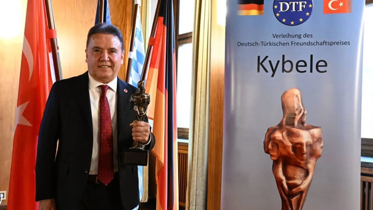 Türk-Alman dostluk köprüsünü güçlendiren çalışmaları nedeniyle, Türk Alman Dostluk Federasyonu tarafından Kybele ödülüne layık görülen Antalya Büyükşehir Belediye Başkanı Muhittin Böcek düzenlenen törenle ödülünü aldı.ANTALYA (İGFA) - Türk-Alman Dostluk Federasyonu (DTF) tarafından her yıl geleneksel olarak Türkiye ile Almanya arasında spor, ekonomi, politika ve eğitim gibi çeşitli alanlarda başarılı çalışmalar gerçekleştiren kişilere verilen "Kybele" ödülünün sahibi bu yıl Antalya Büyükşehir Belediye Başkanı Muhittin Böcek ve Nürnberg Büyükşehir Belediye Başkanı Marcus König oldu. Nürnberg Belediye Başkanlığı binasının tarihi toplantı salonunda gerçekleşen ödül törenine, siyasiler ve ekonomi dünyasından isimler katıldı. Nürnberg Belediyesi’nin tarihi toplantı salonunda gerçekleşen ödül töreninde Antalya Büyükşehir Belediye Başkanı Muhittin Böcek ve Nürnberg Belediye Başkanı Marcus König’e ödülleri takdim edildi.