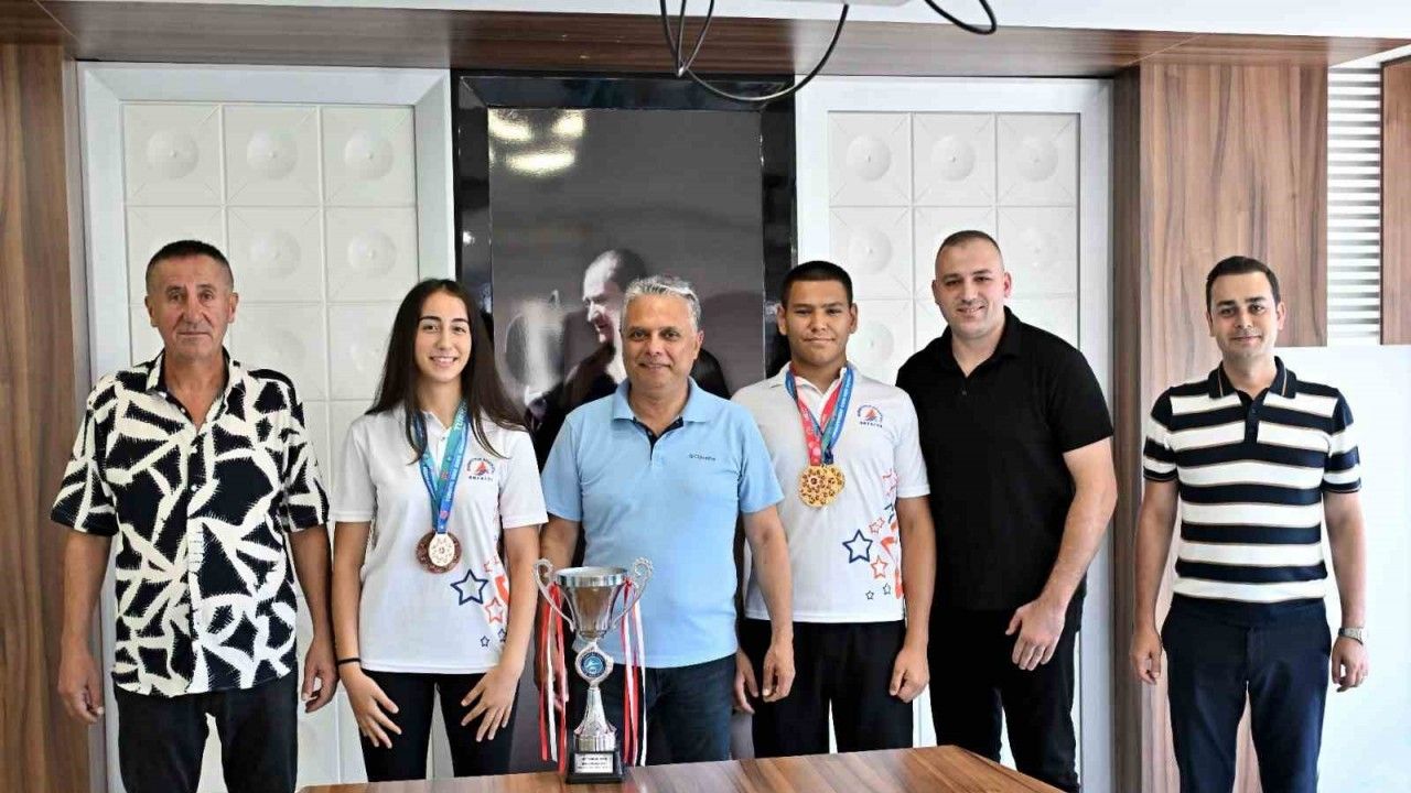 İzmir’de düzenlenen şampiyonadan altın madalyayla dönen Senekci ve Ündar’a, ziyarette antrenörleri Hasan Mert Kızıl ve CHP Muratpaşa İlçe Başkanı Can Okan Kıran da eşlik etti. Başkan Uysal, sporcuları tek tek tebrik ederek, "Sizler, azmin ve disiplinin ne kadar büyük başarılara yol açabileceğini bir kez daha gösterdiniz. Antalya’nın gurur kaynağı oldunuz. Daha nice başarılara birlikte yürümek dileğiyle" dedi.