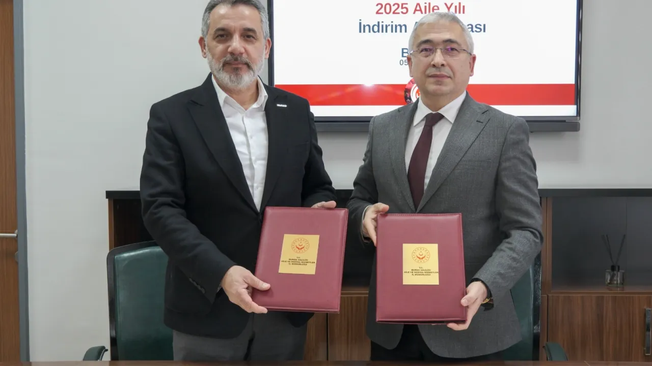 Cumhurbaşkanı Recep Tayyip Erdoğan tarafından 2025’in “Aile Yılı” olarak ilan edilmesi kapsamında, aileleri desteklemeye yönelik çeşitli projeler ve iş birlikleri hayata geçiriliyor. Bu doğrultuda, MÜSİAD Bursa Şubesi ile Bursa Aile ve Sosyal Hizmetler İl Müdürlüğü arasında önemli bir iş birliği protokolü imzalandı.BURSA (İGFA) - MÜSİAD Bursa Şube Başkanı Alparslan Şenocak ve Bursa Aile ve Sosyal Hizmetler İl Müdürü Faruk Uysal tarafından imzalanan protokol törenine, MÜSİAD Bursa Yönetim Kurulu Üyeleri Fatih Özkul ve Fatih Aslan ile Şube Müdürü Harun Pınarbaşı da katıldı. İş birliği kapsamında, MÜSİAD Bursa üyesi işletmeler, 2025 yılı boyunca ailelere özel yüzde 15 indirim sunacak.