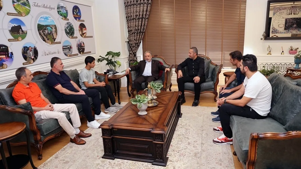 Kayseri Talas Belediyespor altyapısından yetişerek Süper Lig ekiplerinden Trabzonspor’a transfer olan genç yetenek Mustafa Çiğdem, Talas Belediye Başkanı ve Talas Belediyespor Onursal Başkanı Mustafa Yalçın’ı makamında ziyaret etti.