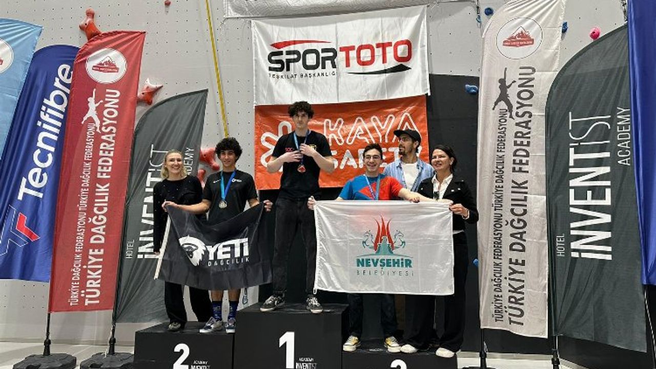 Mehmet UZEL / NEVŞEHİR (İGFA) - Türkiye Dağcılık Federasyonu tarafından düzenlenen Spor Tırmanış Büyükler Kombin ( B-L ) Türkiye Şampiyonası, hafta sonu İstanbul’da gerçekleştirildi. Şampiyonada, Nevşehir’i temsil eden Nevşehir Belediyesi Gençlik ve Spor Kulübü Spor Tırmanış Takımı sporcularından Mustafa Sacit Sümer 3’ncü olmayı başardı. Sümer bu derecesi ile bronz madalya kazandı.