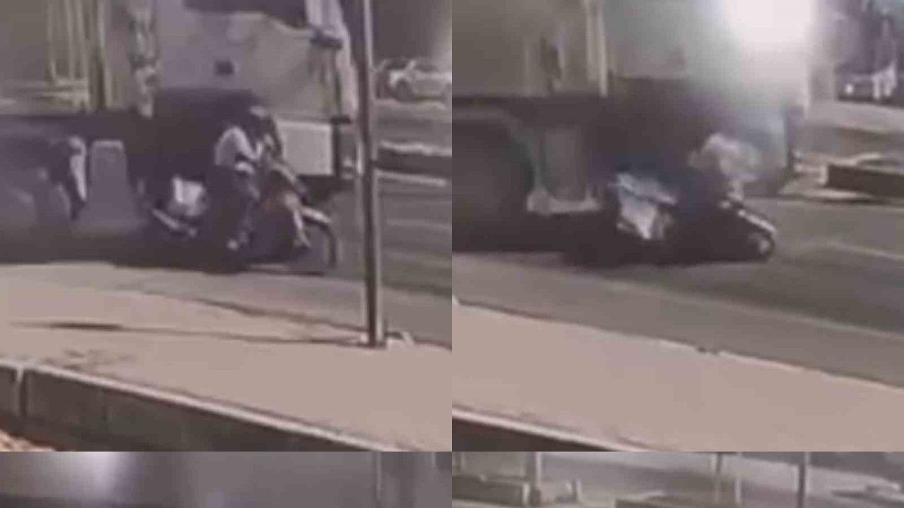 Mersin’in Erdemli ilçesinde kamyonunun altında kalan motosiklet sürücüsü yaralandı. Kaza anı saniye saniye güvenlik kamerasına yansıdı.