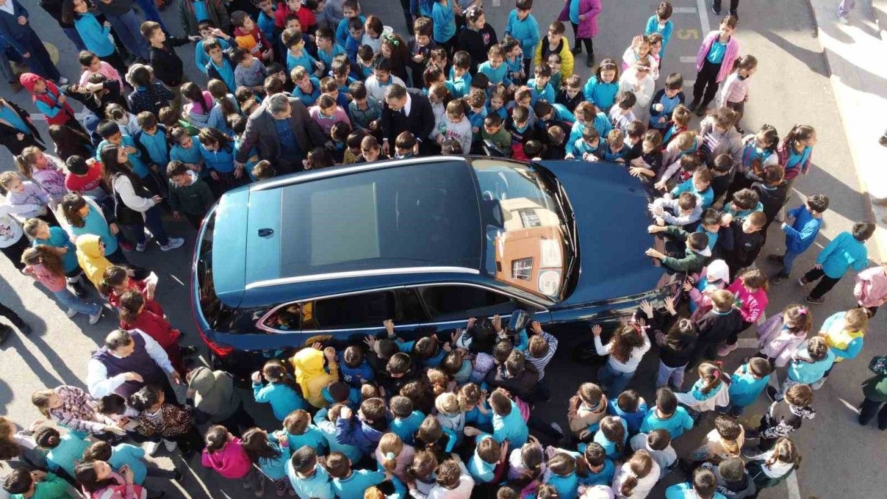 Mersin’in Erdemli ilçesinde öğrenciler, okullarında Türkiye’nin yerli arabası Togg’u görünce büyük heyecan yaşadı. Öğrenciler araca dokunmak için birbirleriyle yarıştı. Öğrenciler kadar öğretmenler de aracı incelemek için ilgi gösterdi.