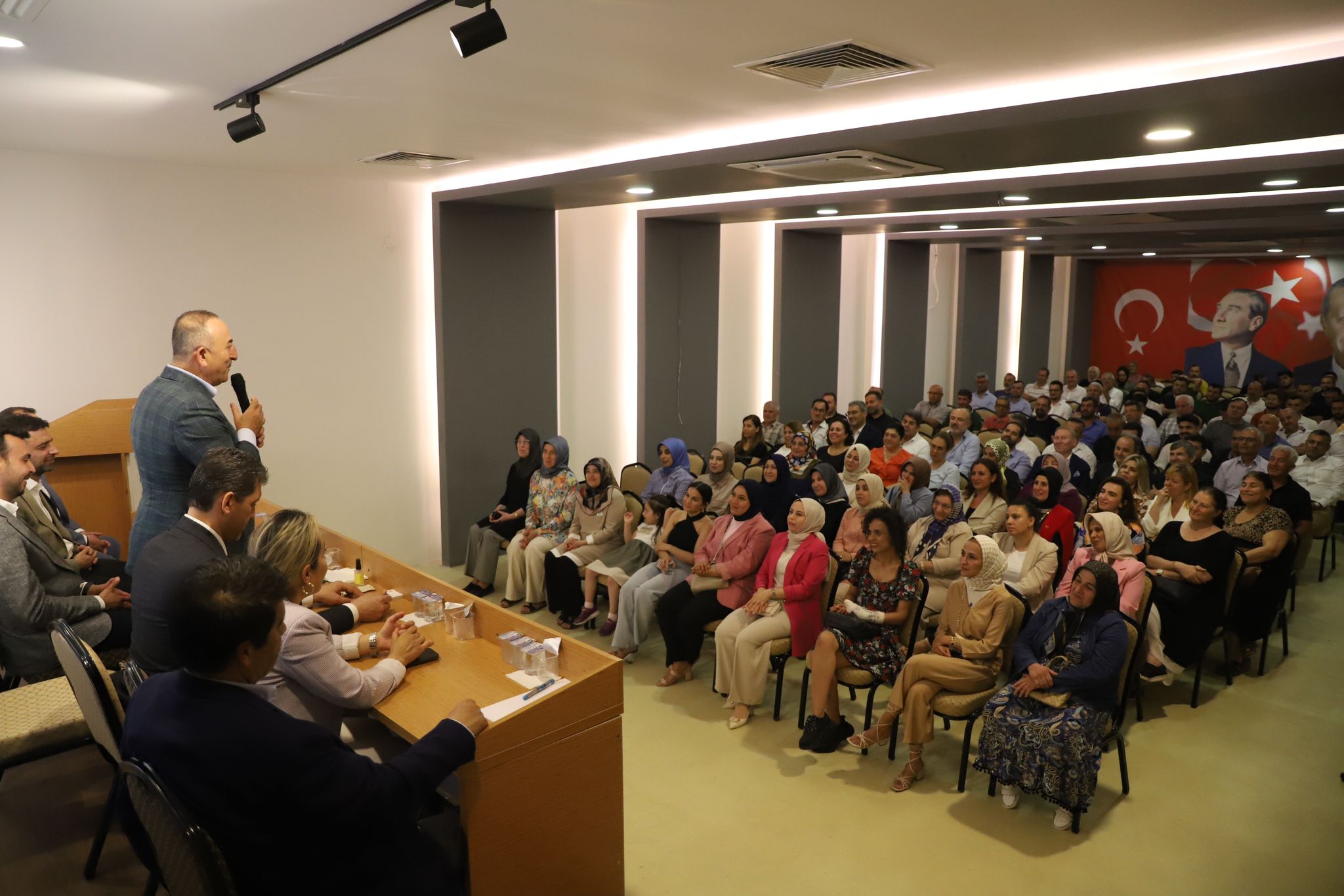 Önceki dönem Dışişleri Bakanı, Antalya Milletvekili Mevlüt Çavuşoğlu, İl Başkanı Ali Çetin, Antalya Milletvekilleri Mustafa Köse, Tuba Vural Çokal, Kemal Çelik, İbrahim Ethem Taş, AK Parti Alanya İlçe Teşkilatında Ana Kademe, Kadın Kolları, Gençlik Kolları, Mahalle Başkanları ve Belediye Meclis Üyeleri ile toplantıda bir araya geldi. Çavuşoğlu toplantıda teşkilat mensuplarına 14 Mayıs ve 28 Mayıs seçimlerinde azim ve gayretleri ile Cumhurbaşkanı Recep Tayyip Erdoğan’ın arkasında güçlü bir şekilde durdukları için teşekkürlerini ileterek önümüzdeki 5 yıllık sürecin Türkiye Yüzyılı için son derece değerli bir dönem olduğunu ifade etti.